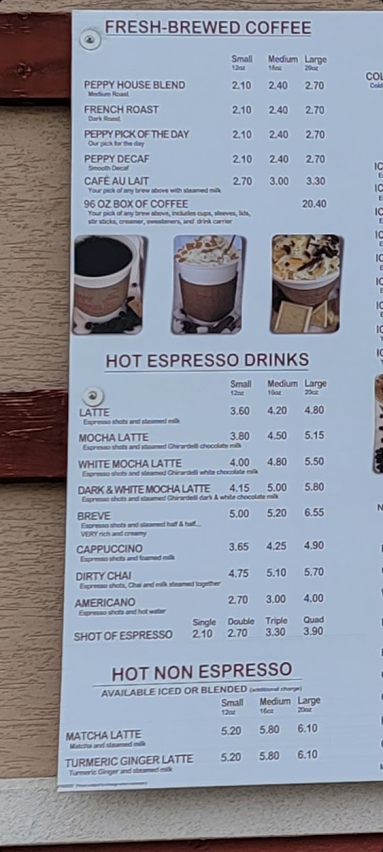 Welcome to Peppy Coffee Co Drive Through, a delightful coffee haven nestled at 1002 Main St, Fort Morgan, CO. This charming drive-thru spot is perfect for coffee enthusiasts and casual drinkers alike. Their menu features a variety of brewed coffee options starting at just $2.10 for house coffee and $4.55 for a creamy café au lait. If you prefer cold beverages, the 96 oz Cold Brew Coffee Box is a must-try at $24.00.